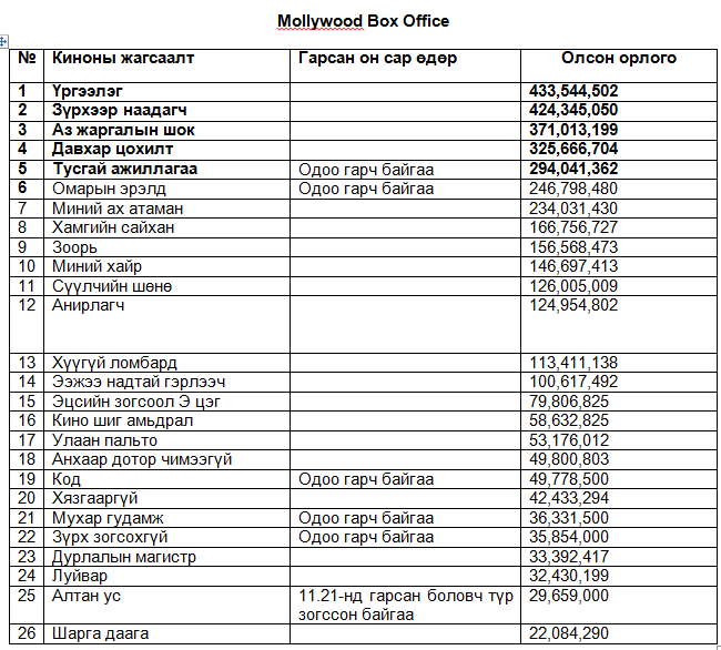 Үргээлэг 2014 оны хамгийн ашиг орлоготой киногоор тодорлоо