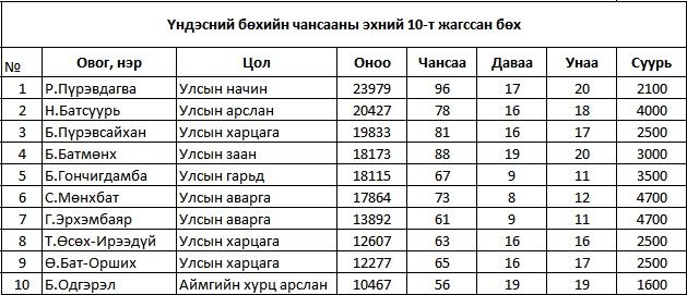 2014 оны чансаа өндөр 10 бөх