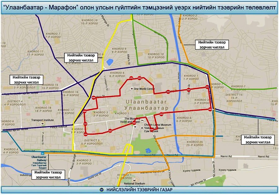 Төв Шуудангийн уулзвараас Цэцэг төвийн уулзвар хүртэлх замыг хаана